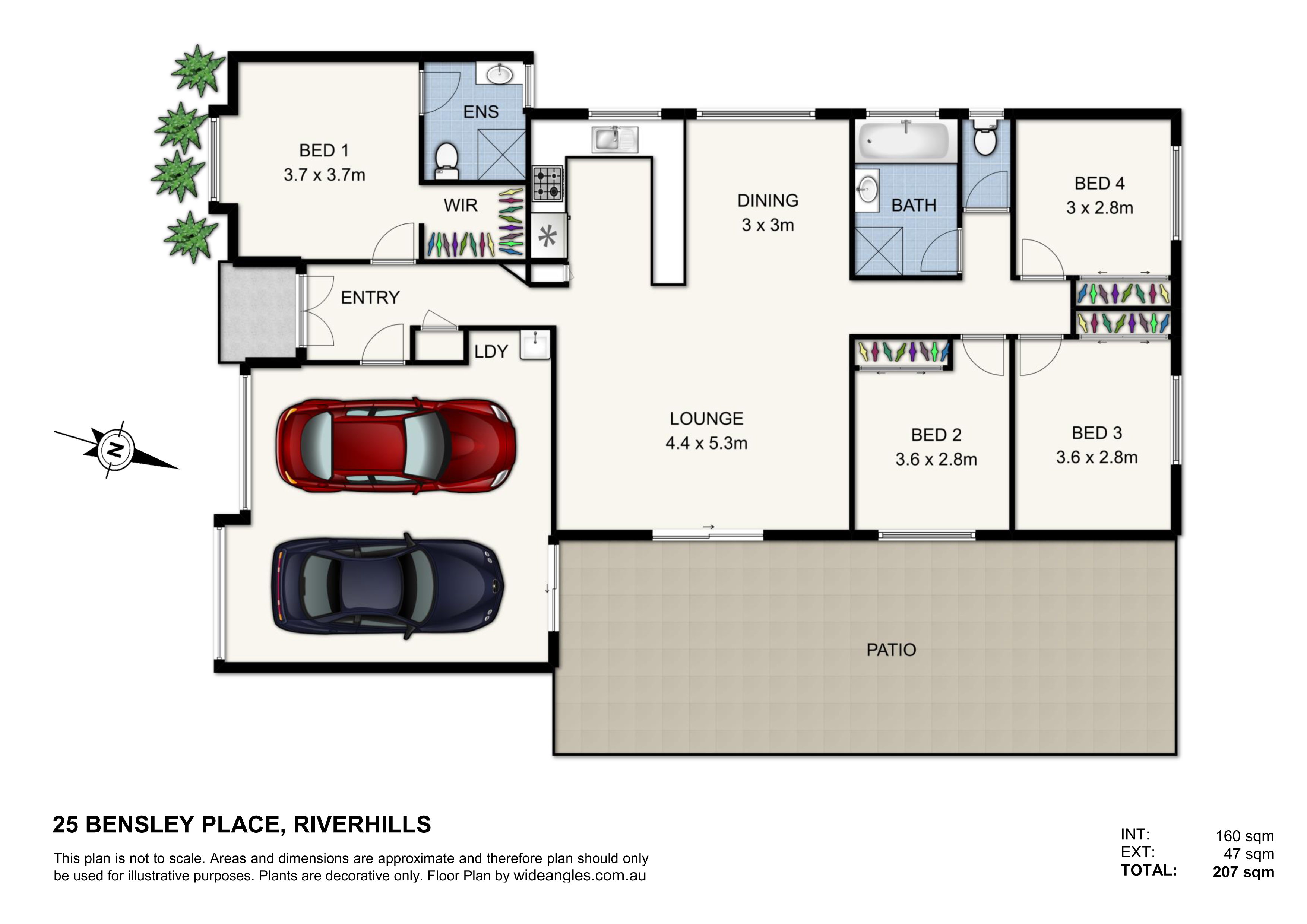 Four-bedroom, master with ensuite and walk in robe, while the other three bedrooms are serviced by a main family bathroom.